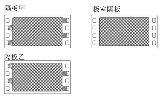 膜對(duì):是由一張陽(yáng)離子交換膜,一張隔板甲(或乙,隔板乙為隔板甲翻轉(zhuǎn)180度);一張陰離子交換膜,一張隔板乙組成。(圖見(jiàn)附件)