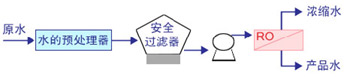 下圖為反滲透原理圖及常規(guī)工藝流程圖: