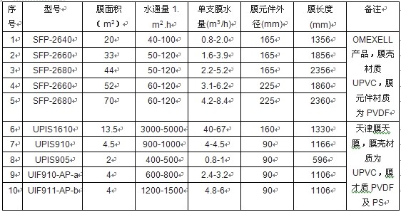 說(shuō)明:UPIS為普通型膜,SFP、UIF9為抗污染膜。